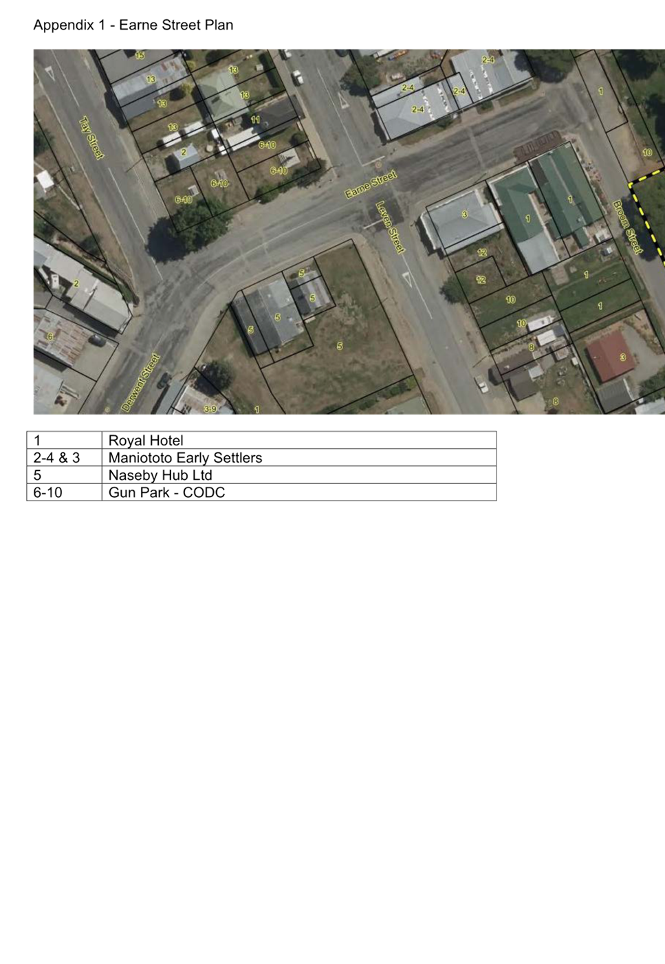 A request has been made by Hazel Harrison, a resident of Naseby, that the Maniototo Community Board considers renaming Earne Street in Naseby. A plan of Earne Street and the affected properties is attached as appendix 1.